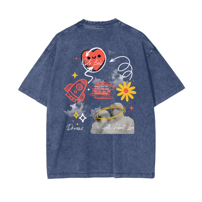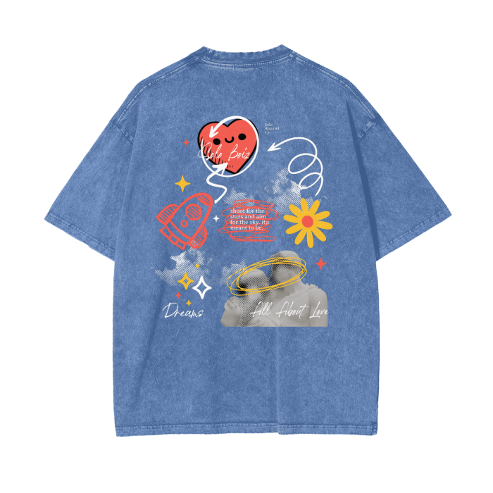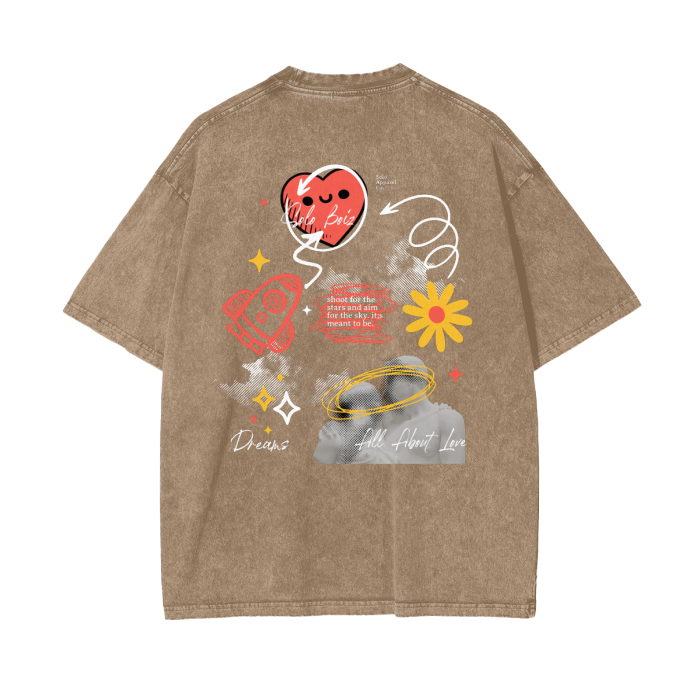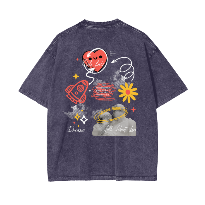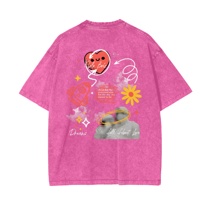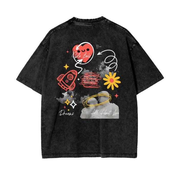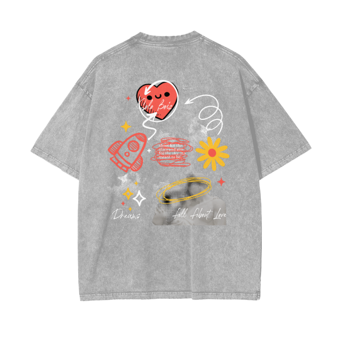 Description: Sometimes all you need is a little bit of luv. An OverSized T-Shirt is Acid washed with excellent quality in every stitch. It has direct to Garment printing that is eco friendly and water based, blending ink directly into the fabric. Never worry about print breaking apart!