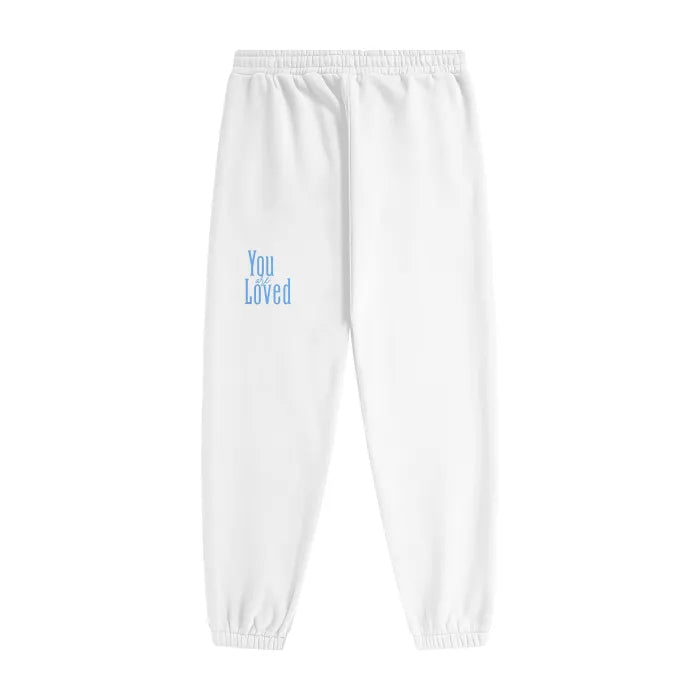 Description: You are Loved! Upgrade your loungewear collection with these custom cotton sweatpants. Made from 100% soft, breathable cotton, they provide a relaxed fit that’s perfect for all-day comfort. It has direct to garment (dtg) printing that is eco friendly and water based, blending ink directly into the fabric. Never worry about print breaking apart!